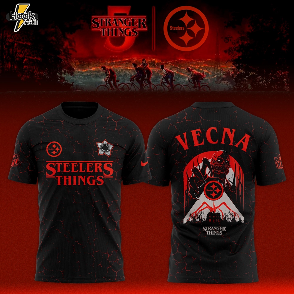 The Pittsburgh Steelers NFL x Stranger Things Limited T-shirt is the perfect blend of sports and nostalgia for fans of both the iconic team and the hit series. Made with premium materials, this unique T-shirt showcases bold graphics that celebrate the Steelers’ legacy while paying homage to the thrilling supernatural world of Stranger Things. Don’t miss out on this limited edition collectible—grab your Pittsburgh Steelers NFL x Stranger Things Limited T-shirt today!
