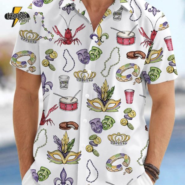 Mardi Gras Beads King Cake Crawfish Shirt For Men