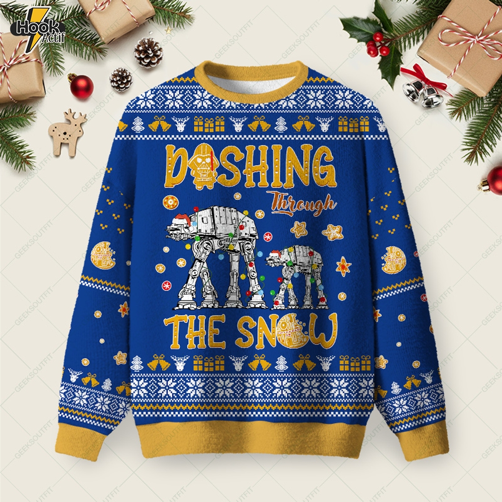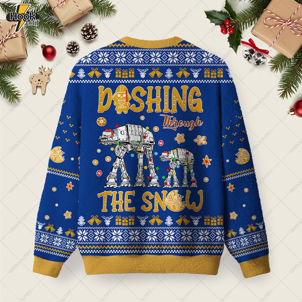 AT Walker Dashing Through The Snow Blue Ugly Christmas Fuzzy Fleece Sweatshirt