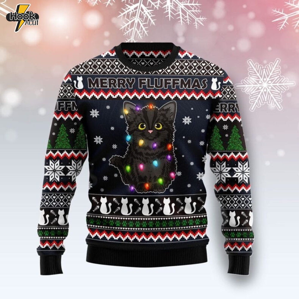 Black Cat Fluffmas Ugly Christmas Sweater 1
