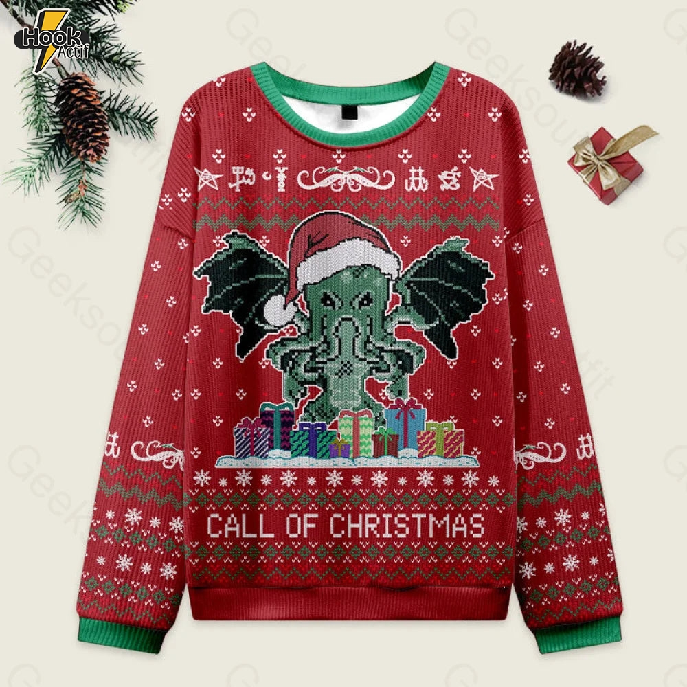 Call of Christmas Red Ugly Christmas Fuzzy Fleece Sweatshirt