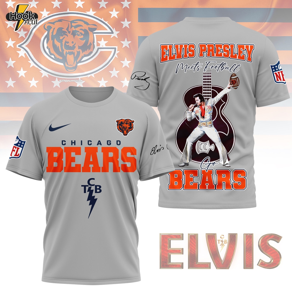 Don’t miss out on this exclusive item—grab your Chicago Bears | Premium NFL Elvis Presley Fan 3D Shirt NY today at HookActif and express your love for the Bears in a truly stylish way.
