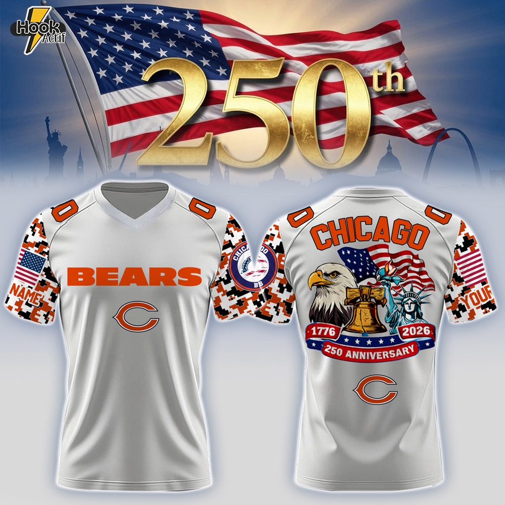 Celebrate the Chicago Bears’ rich history with the exclusive 250th Years USA Anniversary V-neck Short Sleeve Jersey. Designed for true fans, this jersey combines team spirit with a nod to America’s heritage, making it a must-have for any football enthusiast.