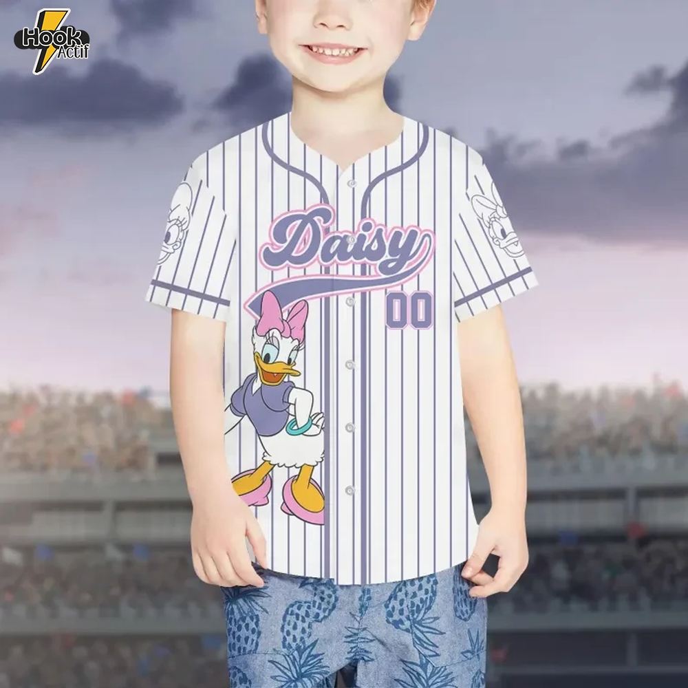 Inspired by the iconic Daisy Duck, this jersey captures her spirited personality while offering a fresh take on classic baseball attire. Embrace your inner fan with a shirt that not only showcases your love for Daisy but also sets you apart from the crowd.