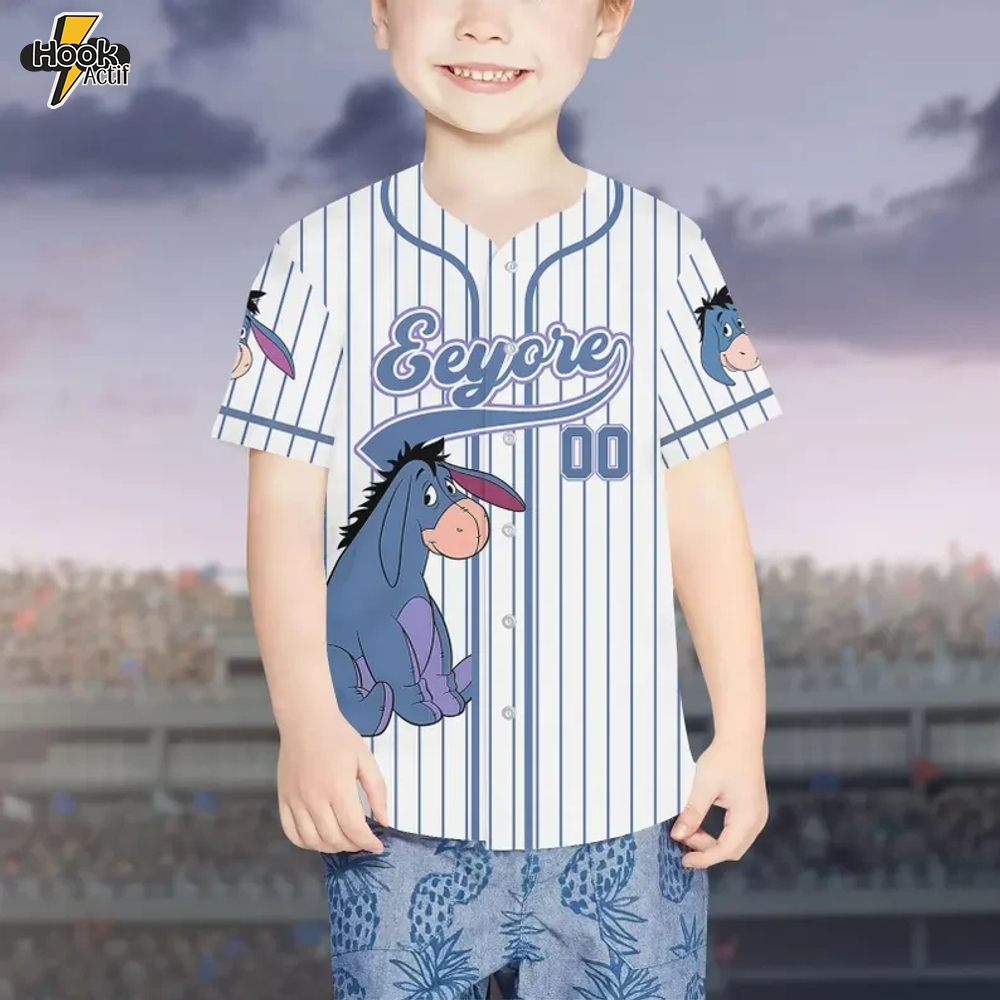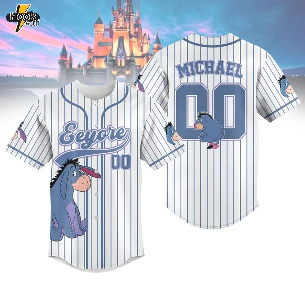 Unleash your inner fan with the Custom Eeyore Character Baseball Jersey, the ideal fusion of style and nostalgia. This unique jersey is inspired by the beloved character from Winnie the Pooh, bringing a touch of whimsy to your sportswear collection.