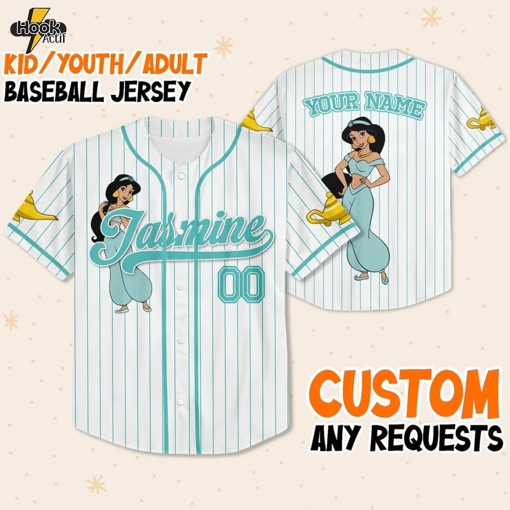 Choose the Custom Princess Jasmine Character Baseball Jersey for its lightweight feel, moisture-wicking material, and personalized design options. Perfect for gamedays, practice sessions, or casual outings, this jersey lets you showcase your fandom in style.