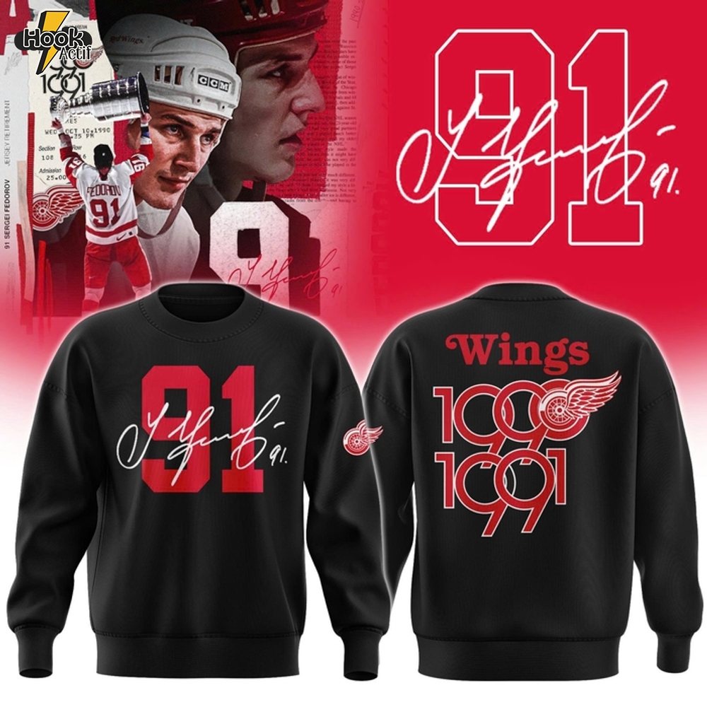 Detroit Red Wings 91 Sergei Fedorov Black Sweatshirt 1