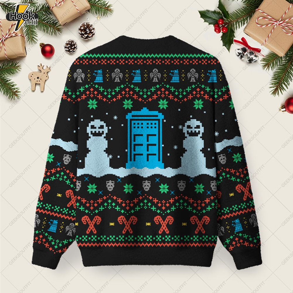Doctor Who Black Ugly Christmas Fuzzy Fleece Sweatshirt 2