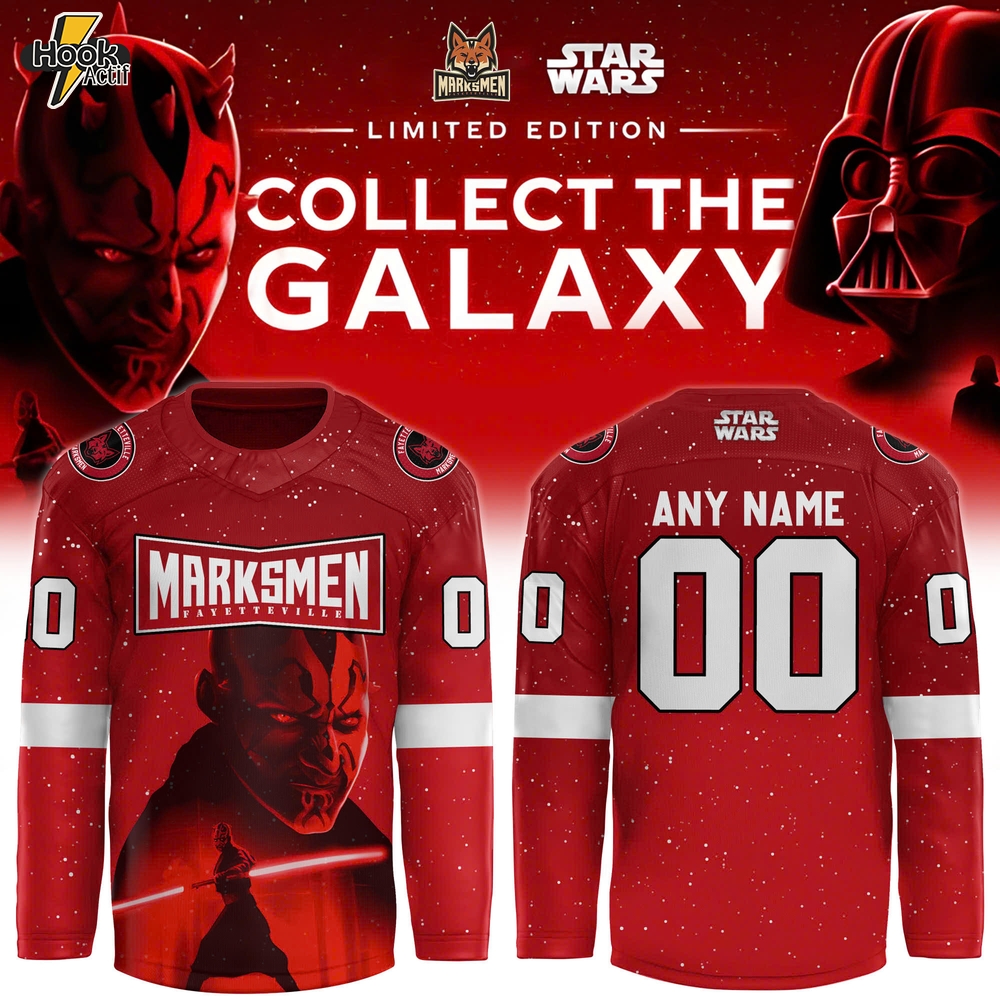 Introducing the Fayetteville Marksmen x Darth Maul Star Wars Special Edition Hockey Jersey, where the thrilling world of Star Wars meets the excitement of hockey. This unique NHL jersey combines striking design elements inspired by Darth Maul with the spirit of the Fayetteville Marksmen. Fans should grab this exclusive piece for its limited edition appeal and stylish homage to a beloved franchise. Elevate your game-day gear with the Fayetteville Marksmen x Darth Maul Star Wars Special Edition Hockey Jersey.
