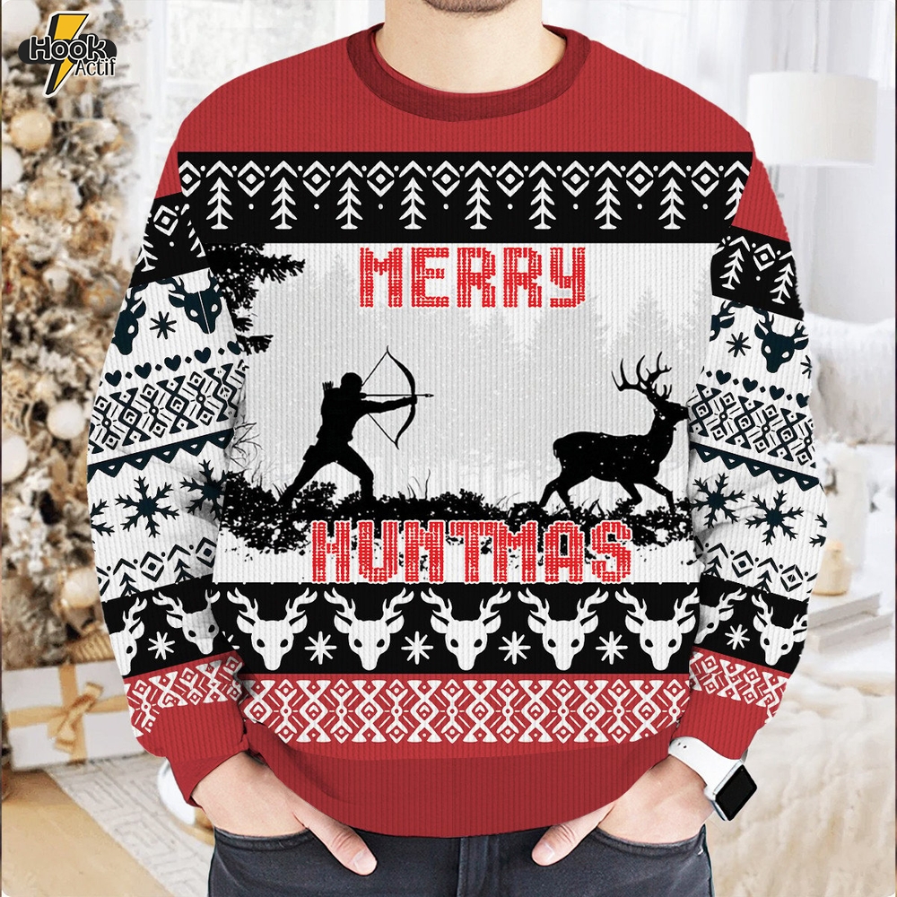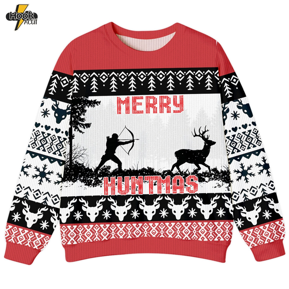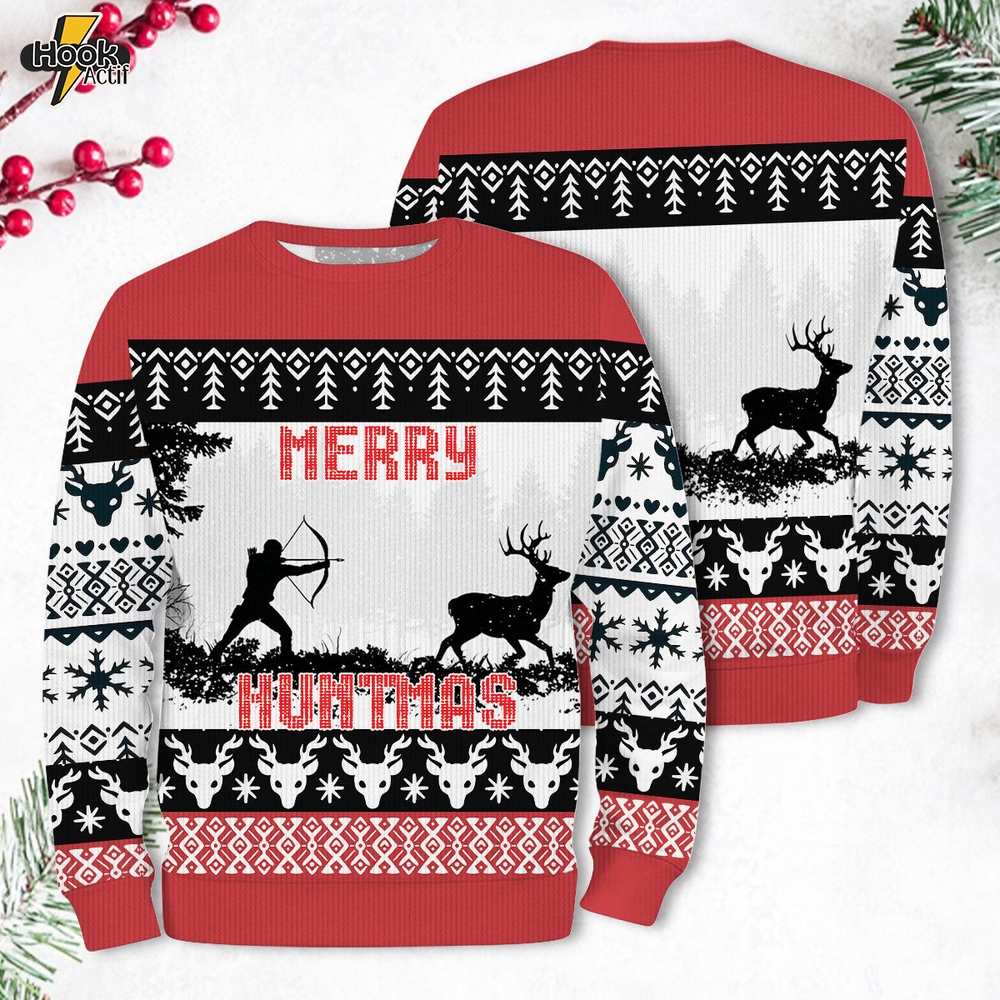 Funny Deer Hunting Merry Huntmas Ugly Sweater 1