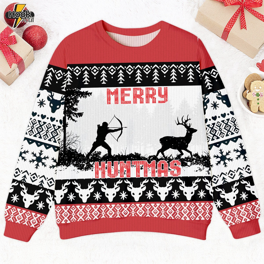 The Funny Deer Hunting Merry Huntmas Ugly Sweater is the perfect holiday apparel for hunting enthusiasts and lovers of humor. This festive sweater combines quirky design with comfort, making it ideal for Christmas parties and family gatherings. Stand out in style while showcasing your love for hunting during the holiday season. Elevate your wardrobe with the Funny Deer Hunting Merry Huntmas Ugly Sweater!