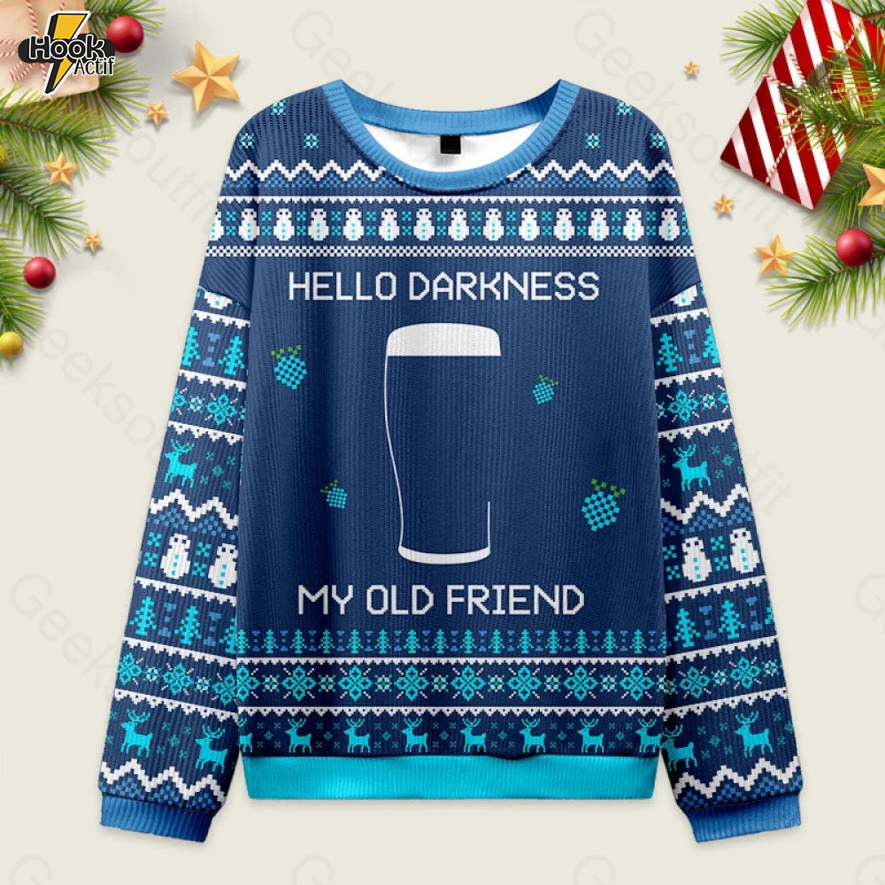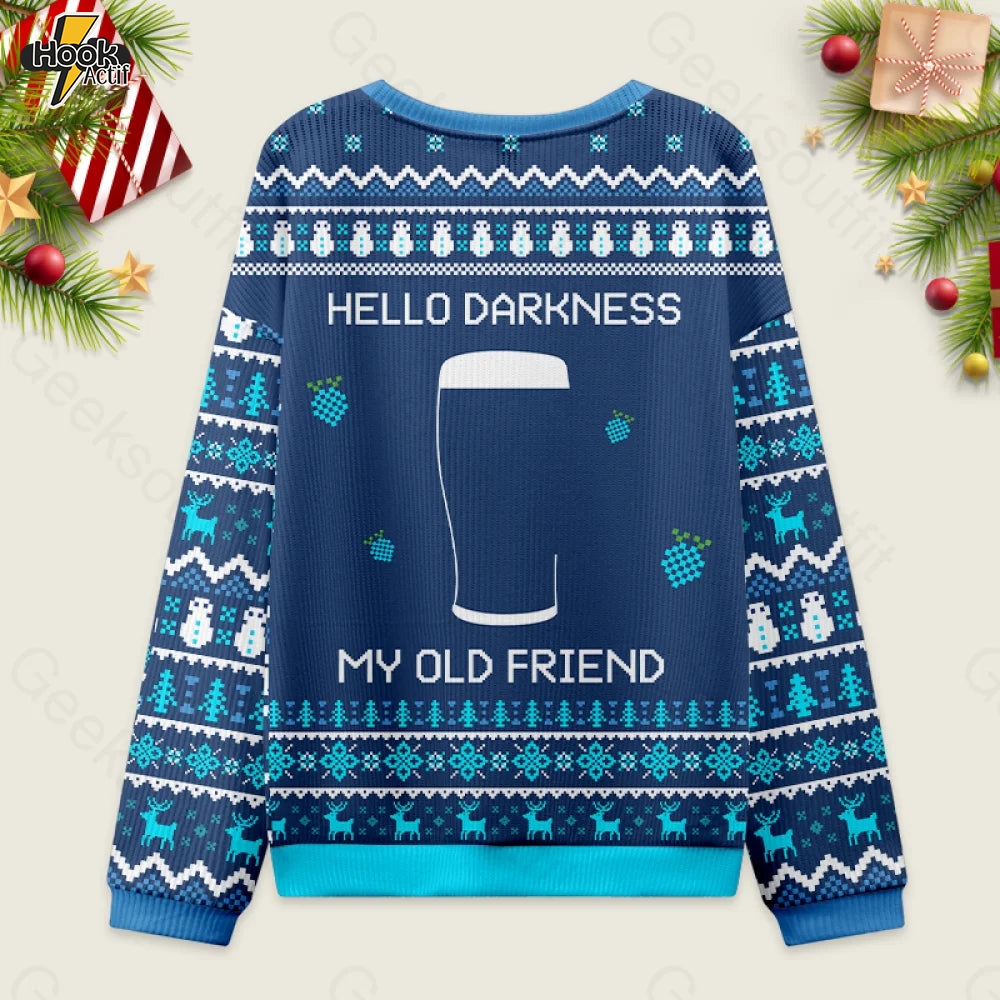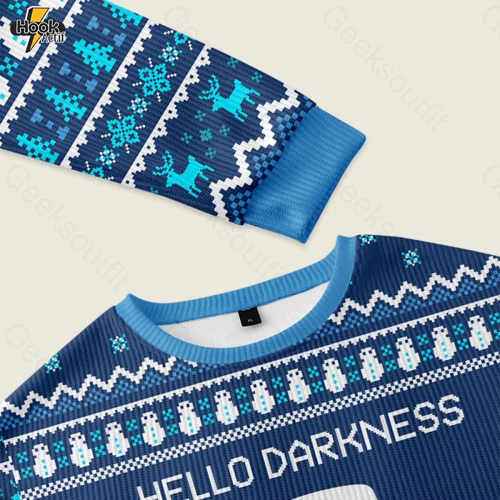 Hello Darkness My Old Friend Blue Ugly Christmas Fuzzy Fleece Sweatshirt