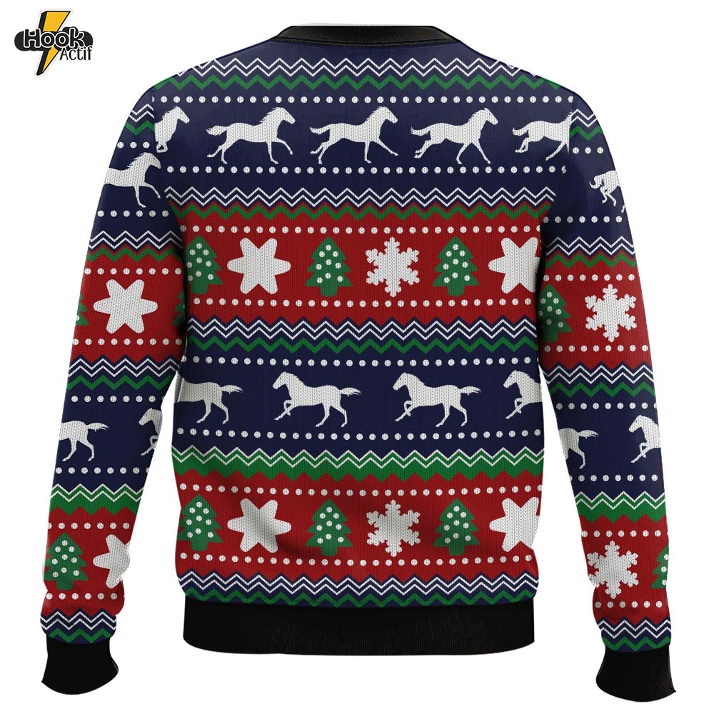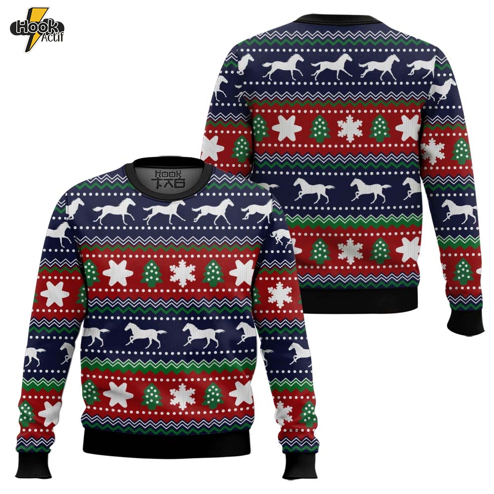 Hooktab Horses Pattern Ugly Christmas Sweater
