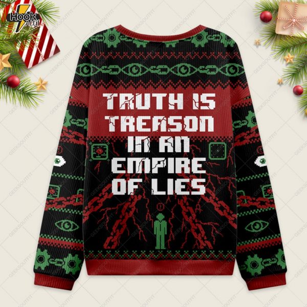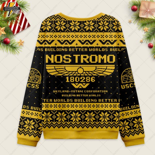 The sweater dons reindeer prancing playfully beneath starry skies printed above in hues reminiscent of frosty evenings when flakes float silently downwards painting everything they touch in shades of white purity until trees glisten under sunsets bleeding crimson red upon horizons holding promise not just for salvation but also new beginnings wrapped neatly under boughs heavy with nostalgia calling back memories fondly etched from years past spent surrounded similarly dressed figures reveling amidst traditions passed down generation after grateful generation whose spirits continue undimmed by time knowing secrets only understood deeply within hearts beating rhythmically beneath such festive fabrics worn proudly year after year without ever fading or losing grace because each thread weaves unity among strangers turned fast friends finding common ground draped elegantly line upon line forming perfect sweaters symbolizing hope renewed once more during midw