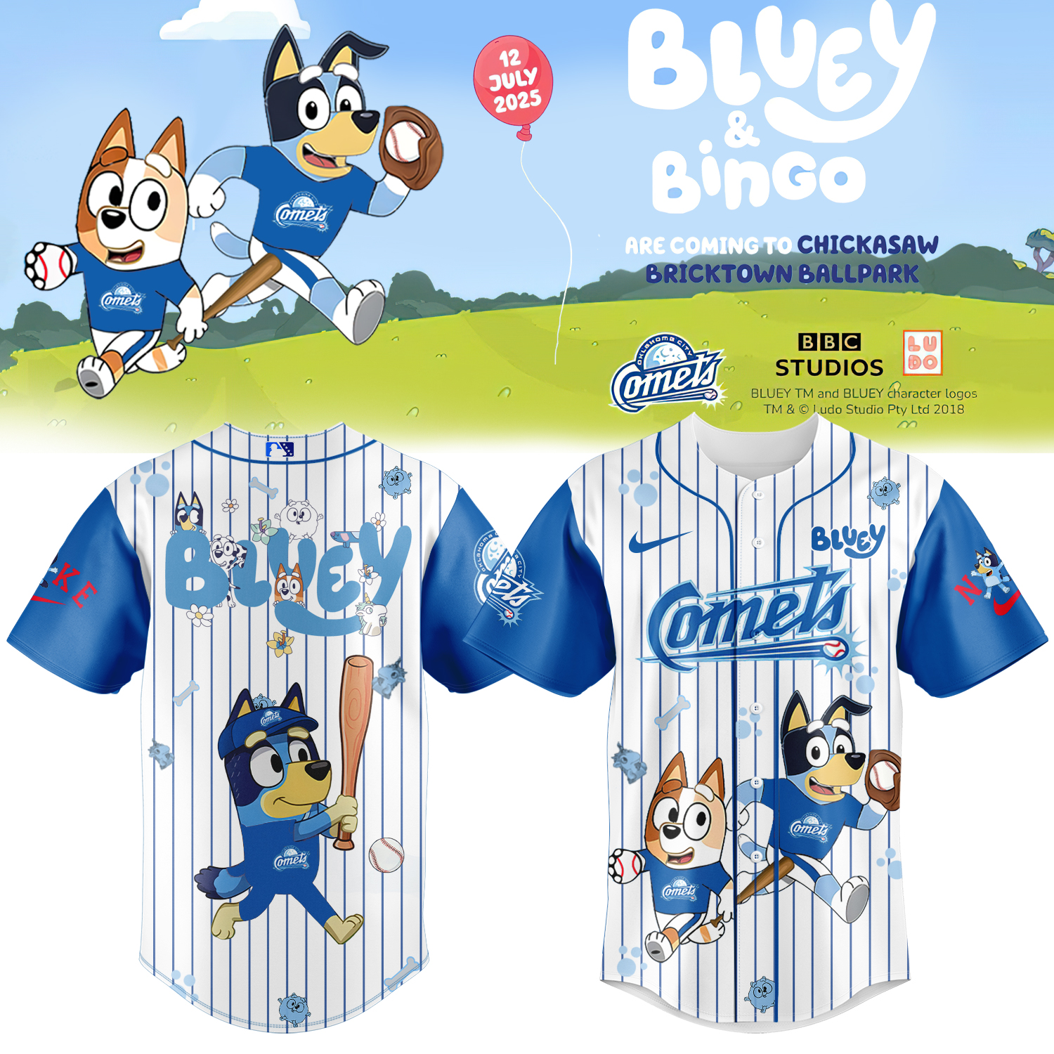 Don’t miss your chance to own a piece of the action—grab your Oklahoma City Comets Bluey and Bingo 2025 White Jersey today and wear it with pride!