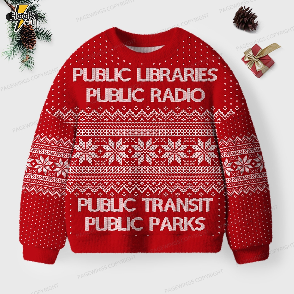 The Public Libraries Public Radio Unisex Ugly Knit Christmas Sweater is the perfect festive attire for book lovers and radio enthusiasts. This cozy and whimsical holiday sweater features delightful designs that celebrate the joy of libraries and public broadcasting. Wear it to holiday gatherings or cozy nights in, and showcase your community spirit. Don’t miss out on the Public Libraries Public Radio Unisex Ugly Knit Christmas Sweater this holiday season!