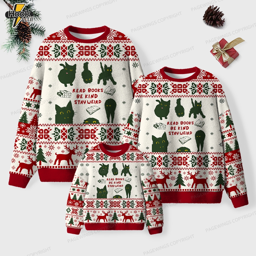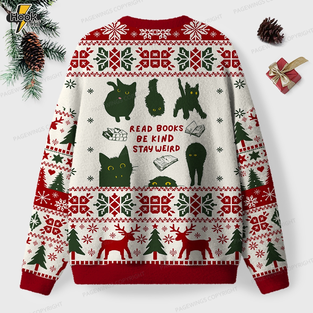 Read Books Be Kind Stay Weird Unisex Ugly Knit Christmas Sweater