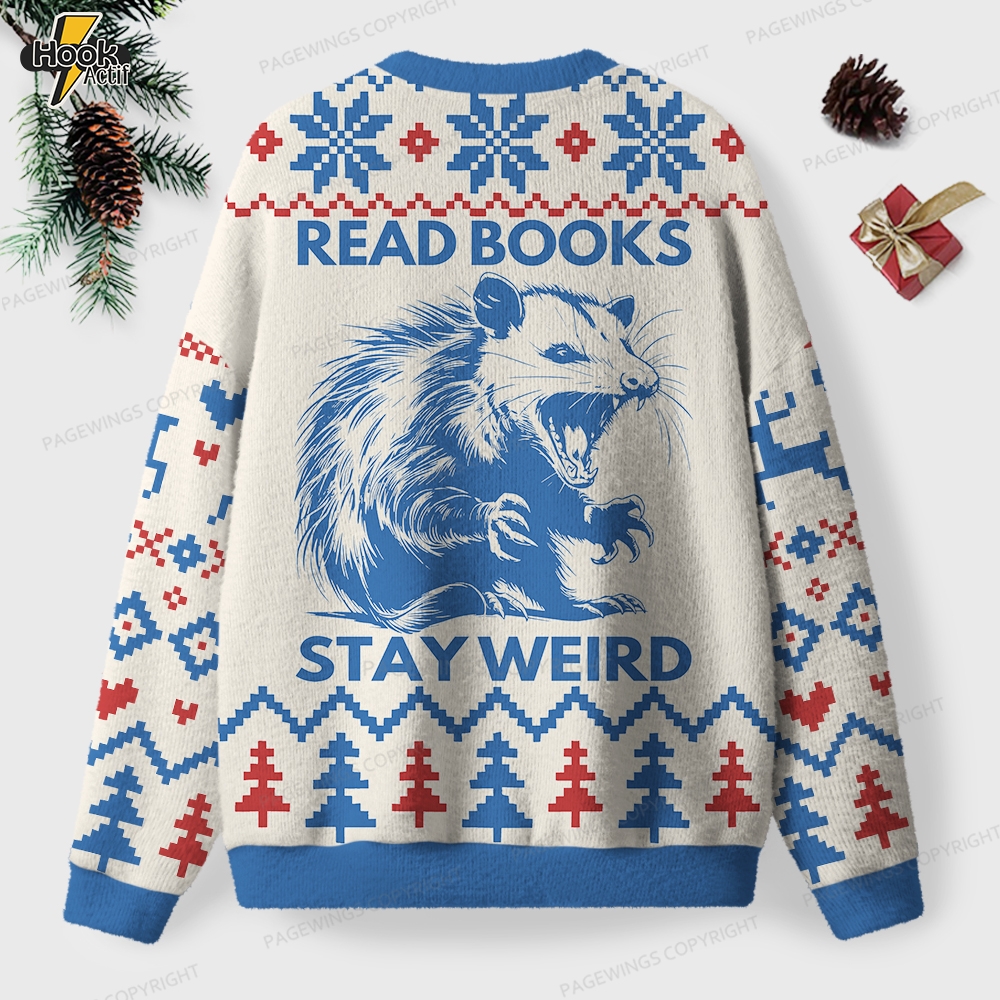 Read Books Stay Weird Unisex Ugly Knit Christmas Sweater 1