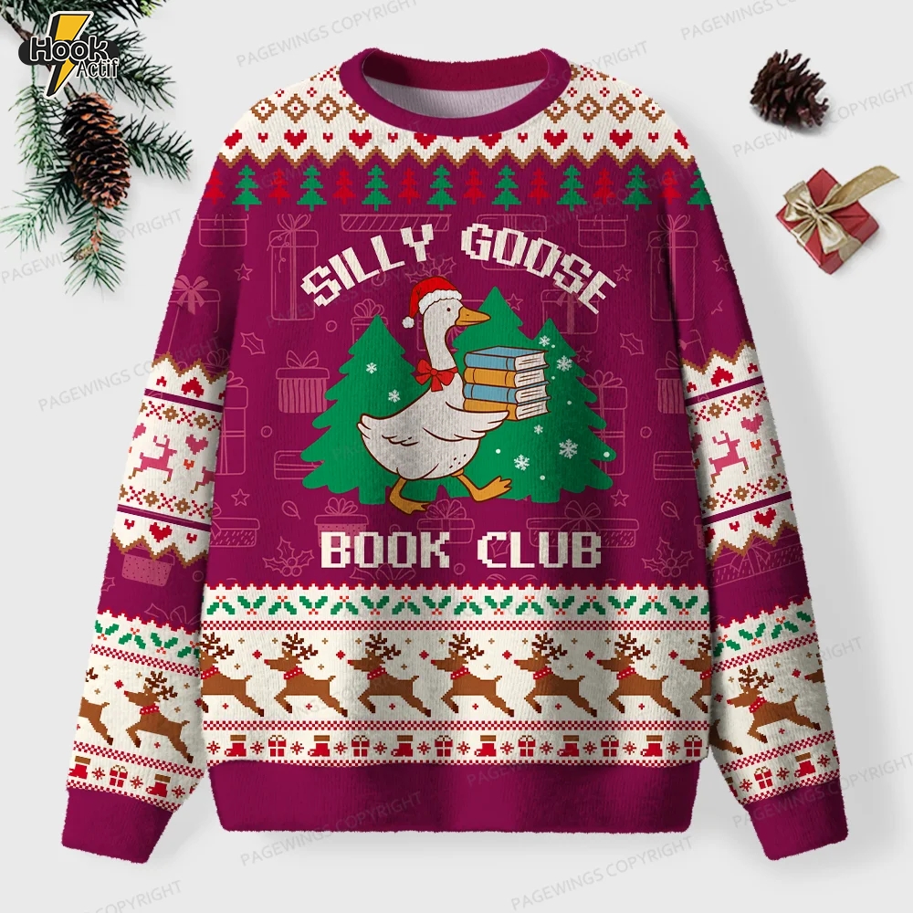 Silly Goose Book Club Unisex Ugly Knit Christmas Sweater