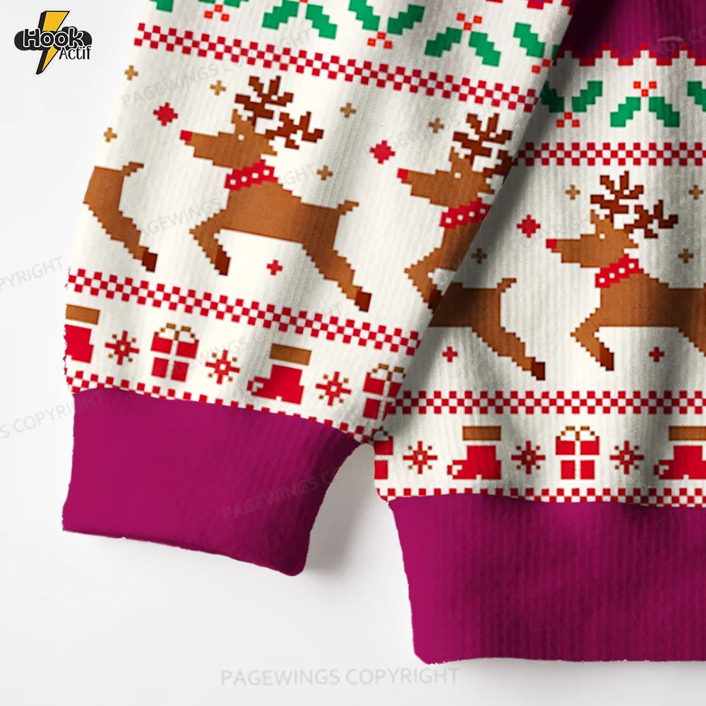 Embrace the joy of the holiday season with our exclusive Christmas sweater, crafted from a durable blend of 95% Polyester and 5% Spandex. This sweater features dye-sublimation technology for vibrant, festive patterns that won’t fade or crack, keeping your look bold and cheerful throughout the holidays.