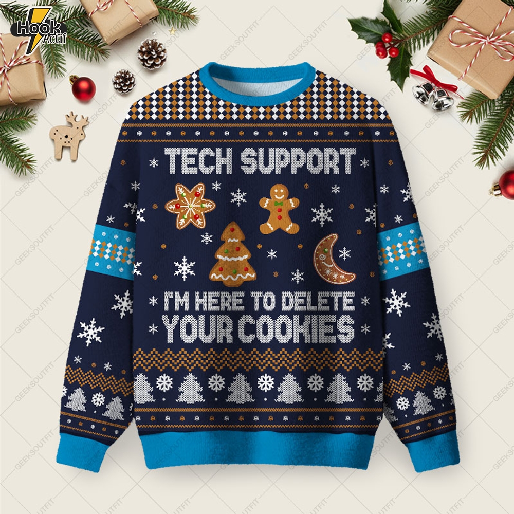 Product Picture: Tech Support Computer Programmer Blue Ugly Christmas Fuzzy Fleece Sweatshirt
