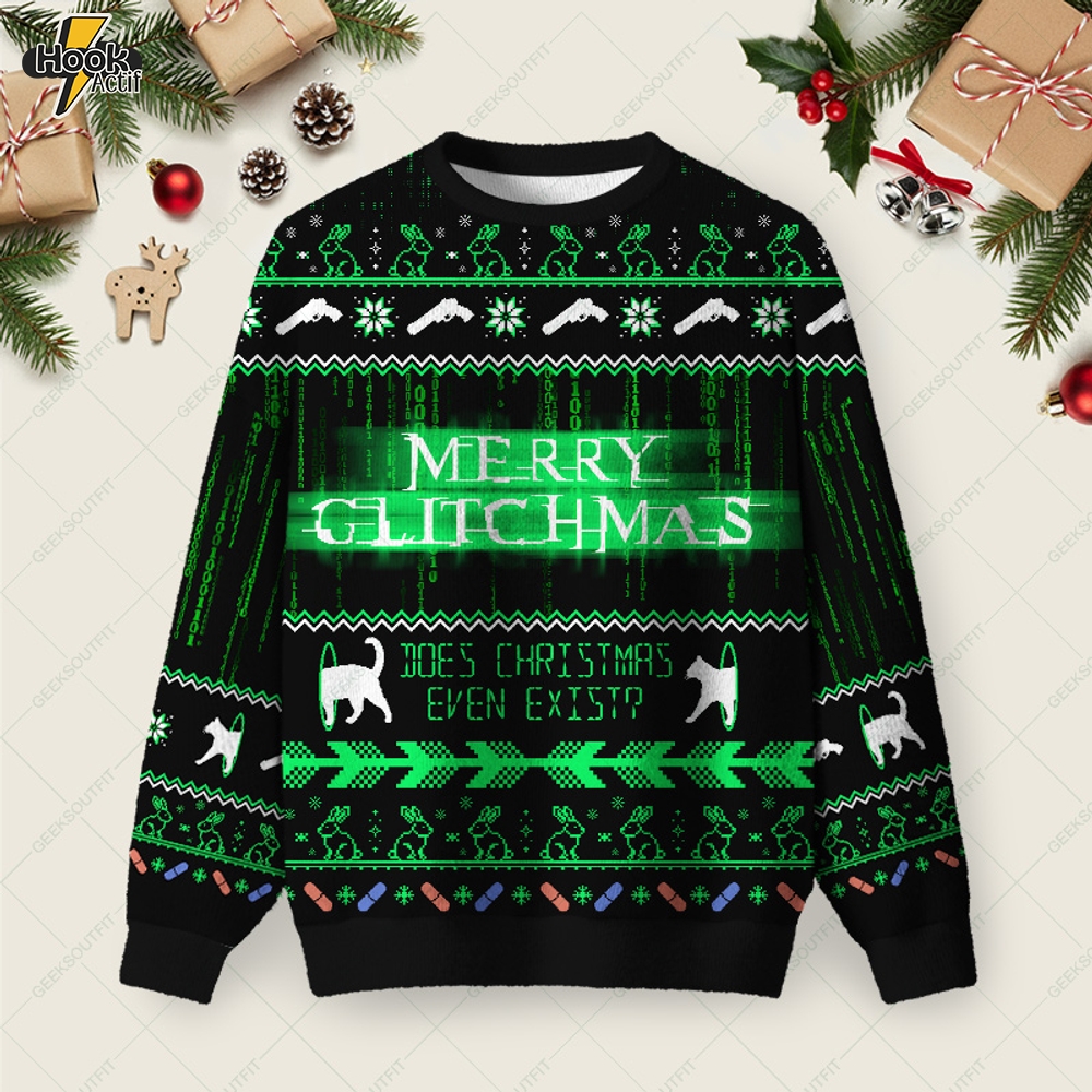 The Matrix Black Green Ugly Christmas Fuzzy Fleece Sweatshirt 1