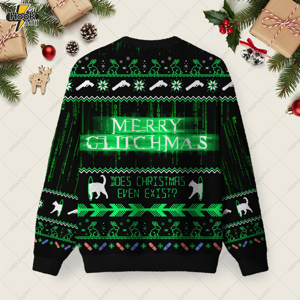 The Matrix Black Green Ugly Christmas Fuzzy Fleece Sweatshirt 2