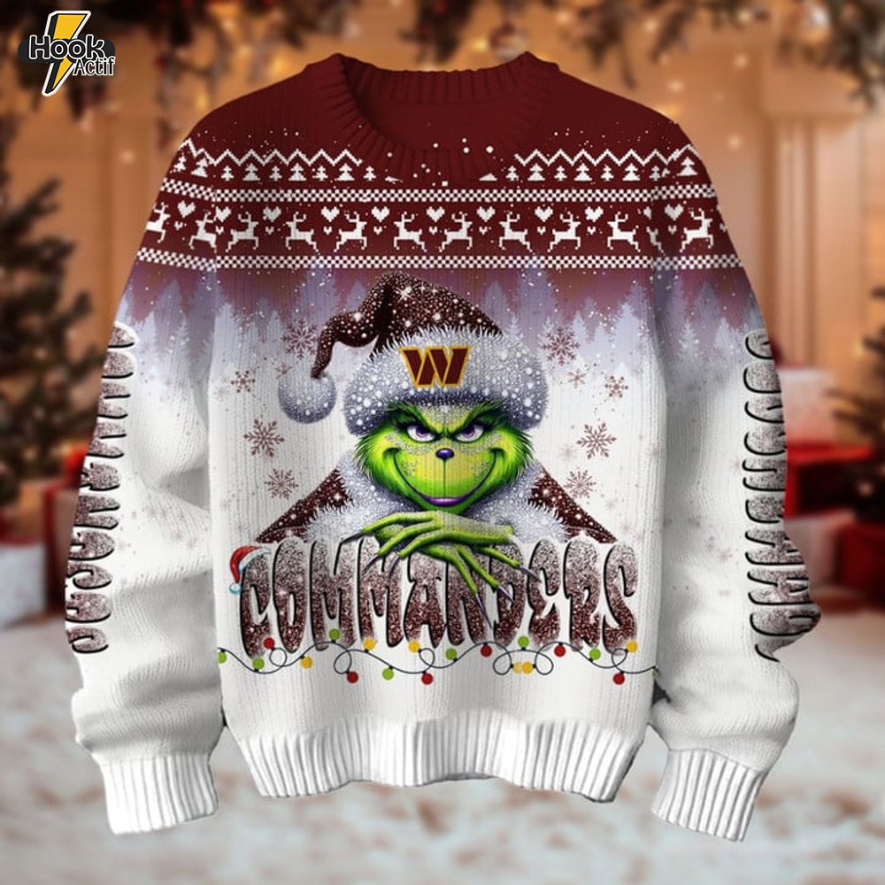 Introducing the Washington Commanders x Grinch Christmas Sweater, the perfect blend of team spirit and festive cheer! This unique holiday sweater showcases the beloved Grinch alongside the iconic Washington Commanders logo, making it an ideal choice for fans looking to celebrate in style. With its cozy fabric and playful design, this Christmas sweater is a must-have for any Commander supporter. Grab your Washington Commanders x Grinch Christmas Sweater today to spread joy and show your team pride during the holiday season!