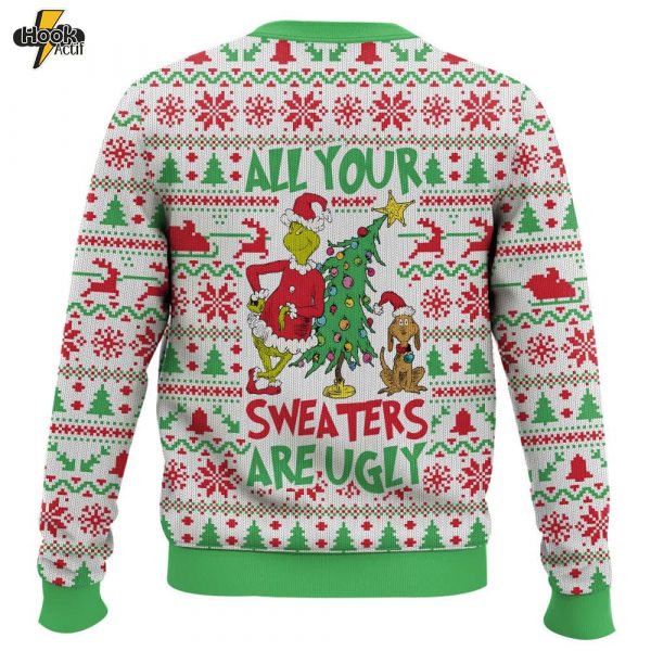 The Hooktab All Your Sweater Are Ugly Grinch Ugly Christmas Sweater is the perfect holiday attire for those looking to spread cheer and laughter at festive gatherings. With its playful design, this Christmas sweater incorporates everyone’s favorite Christmas villain, making it a humorous addition to your wardrobe. Perfect for ugly sweater parties or cozy family…